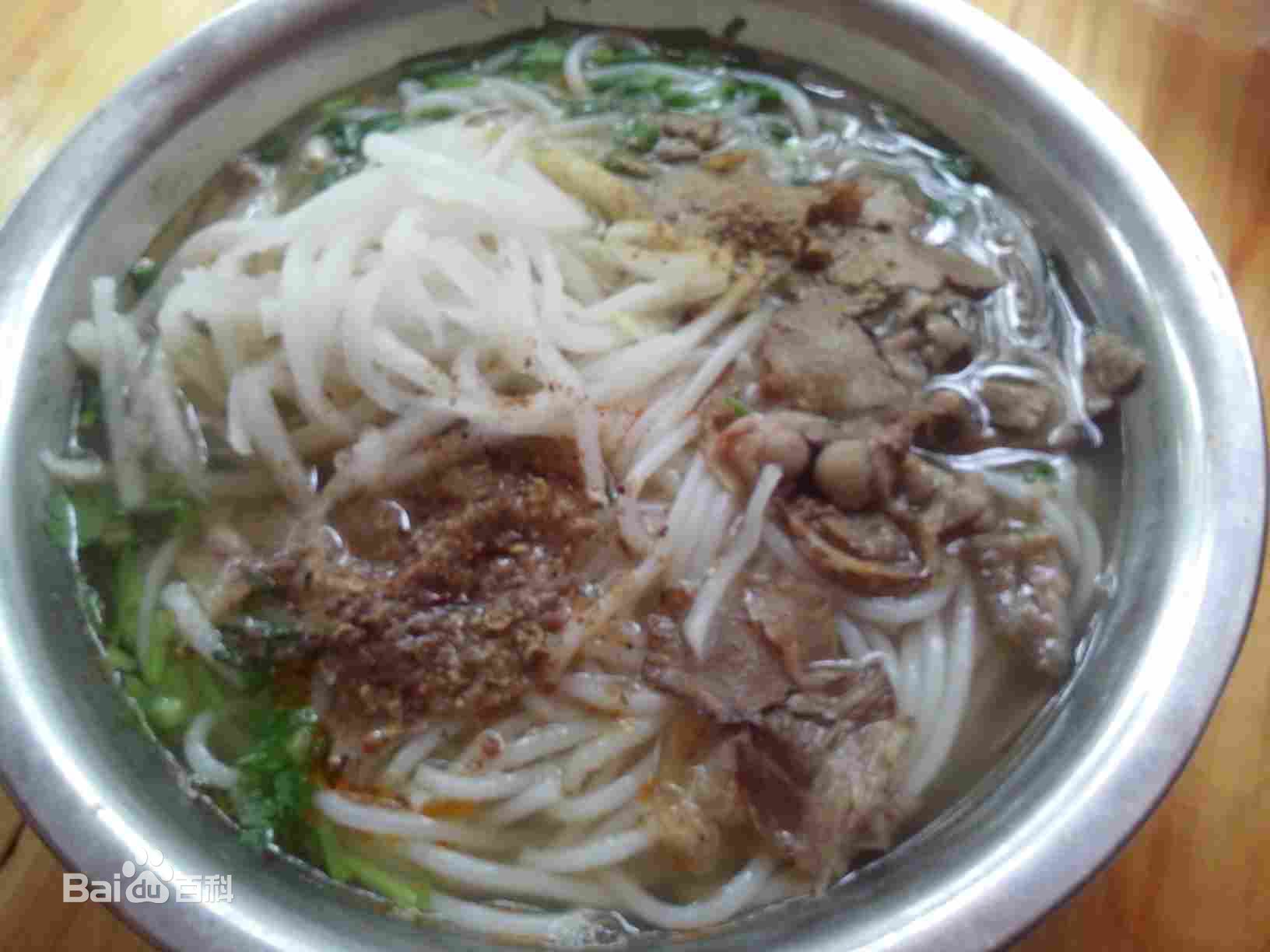 羊肉粉的主要原料是羊肉和米粉(也称作“米线”)。其做法是:先将羊肉炖好,再将米粉在开水锅里烫三次,除去米粉本身的酸味,盛在瓷碗中。然后在米粉上放一层薄薄的羊肉片,这种羊肉片是煮熟后榨压切成的,浇上鲜红的辣椒油,撒一些花椒粉、蒜苗、香葱、芜荽等。最后加入炖过的羊汤。这样做出来的羊肉粉,热气腾腾,香气扑鼻,十分诱人。