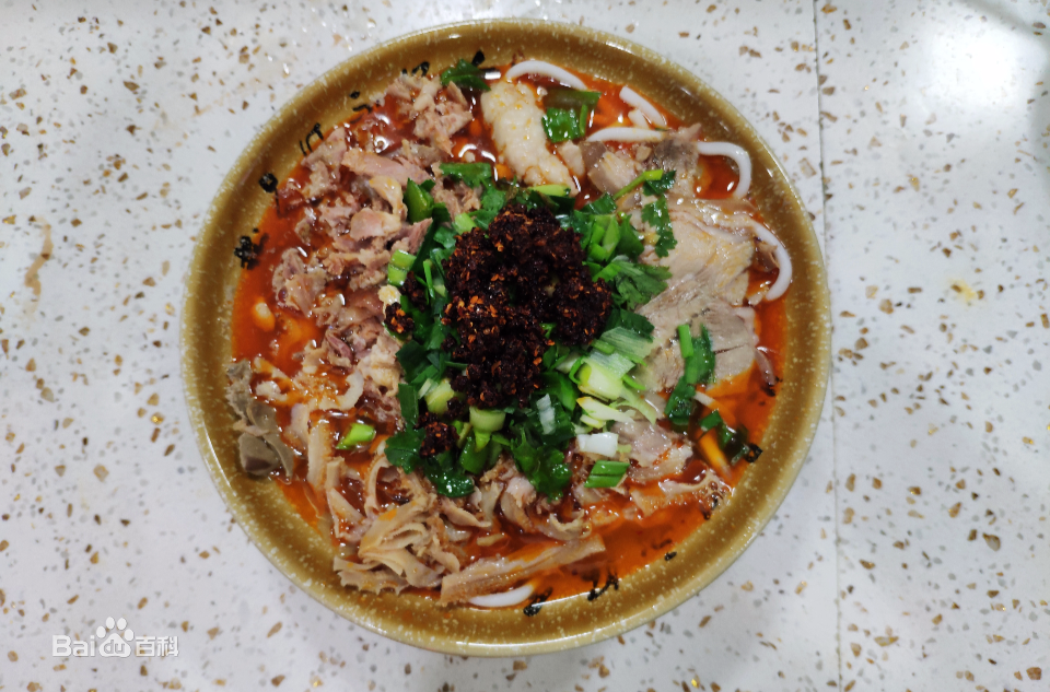 遵义羊肉粉是一道美味可口的地方小吃。用鲜羊肉熬汤,浇米粉,放羊肉片、调料而食。已有300余年制作历史。贵州各地均产羊肉粉,唯有遵义羊肉粉驰名。遵义市的大街小巷,羊肉粉馆栉比鳞次,食客之多,首屈一指。曾获得第二届“中华名小吃”称号。